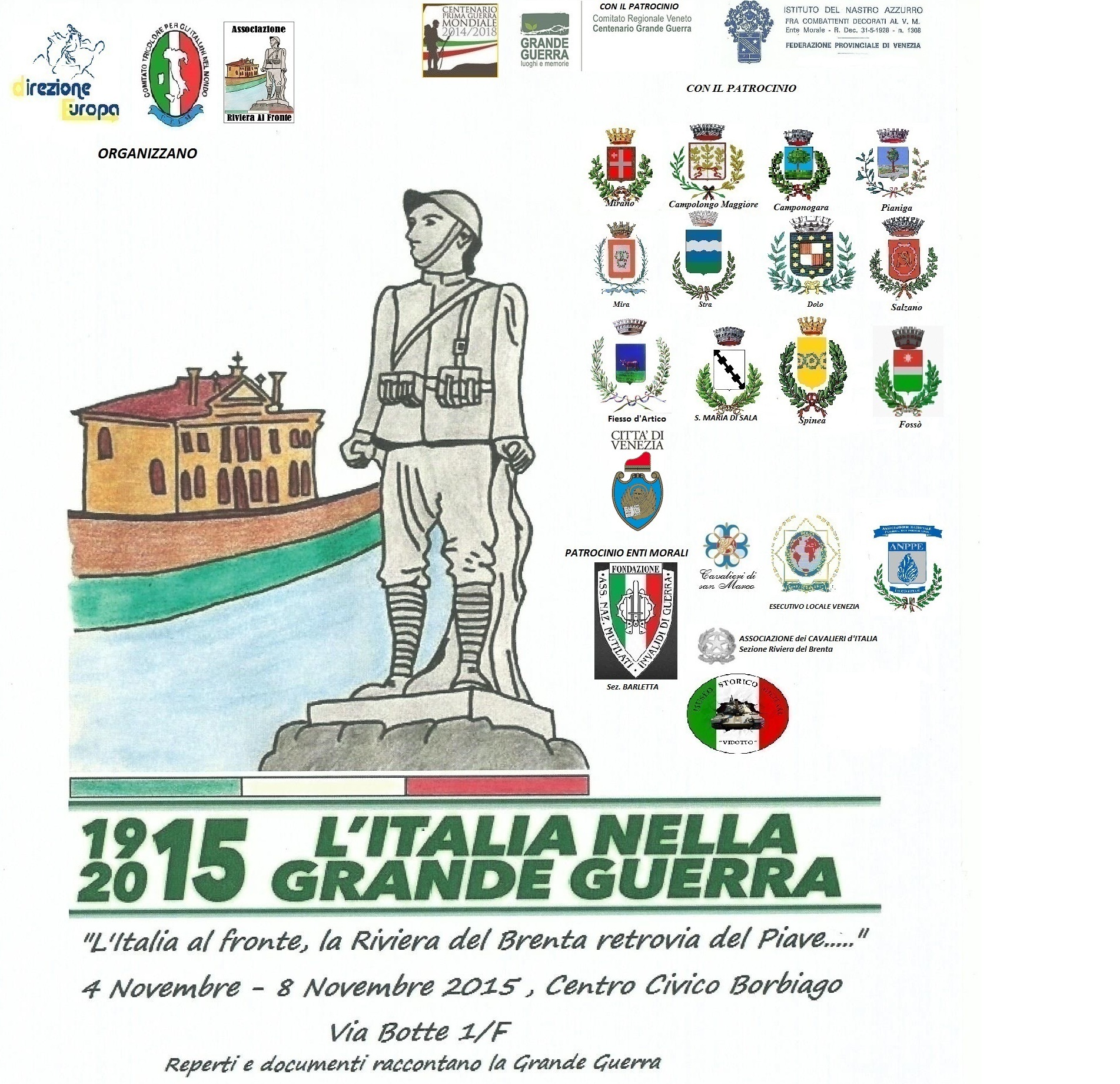 In sinergia con il Comitato Tricolore per gli Italiani nel Mondo, Riviera al Fronte e Direzione Europa, con il sostegno della Presidenza del Consiglio dei Ministri attraverso la struttura di missione per gli anniversari di interesse nazionale, verrà allestita la mostra storica dal titolo “L’Italia al fronte, la Riviera del Brenta retrovia del Piave…”. L’evento vuole rappresentare una tappa fondamentale per comprendere ancor di più il ruolo giocato dal territorio veneto durante il conflitto. Un’importante analisi sarà effettuata sulla storia della Riviera del Brenta, con approfondimenti sulla Mira Lanza quale sede di un ospedale militare e Forte Poerio quale struttura militare, e di Malcontenta e Fusina, che all’indomani di Caporetto era diventata sede di addestramento per gli Arditi e di un aeroporto. Oggetti, foto, documenti, per toccare le condizioni di vita dei soldati e le biografie di combattenti e di caduti della Riviera del Brenta.