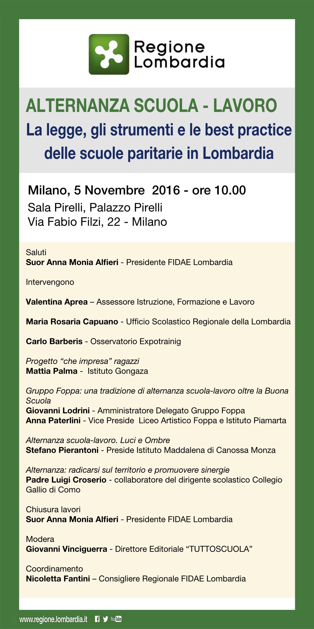 Il collegamento della Scuola, al mondo del lavoro e del territorio aiuterà i nostri giovani ad essere adulti positivi al servizio della Res-Publica. E’l’obiettivo del secondo appuntamento formativo di Fidae Lombardia Seminario di Studio e di confronto ALTERNANZA SCUOLA – LAVORO La legge, gli strumenti e le best practice della scuole paritarie in Lombardia, previsto a Milano il prossimo 5 Novembre 2016 ore 10.00.