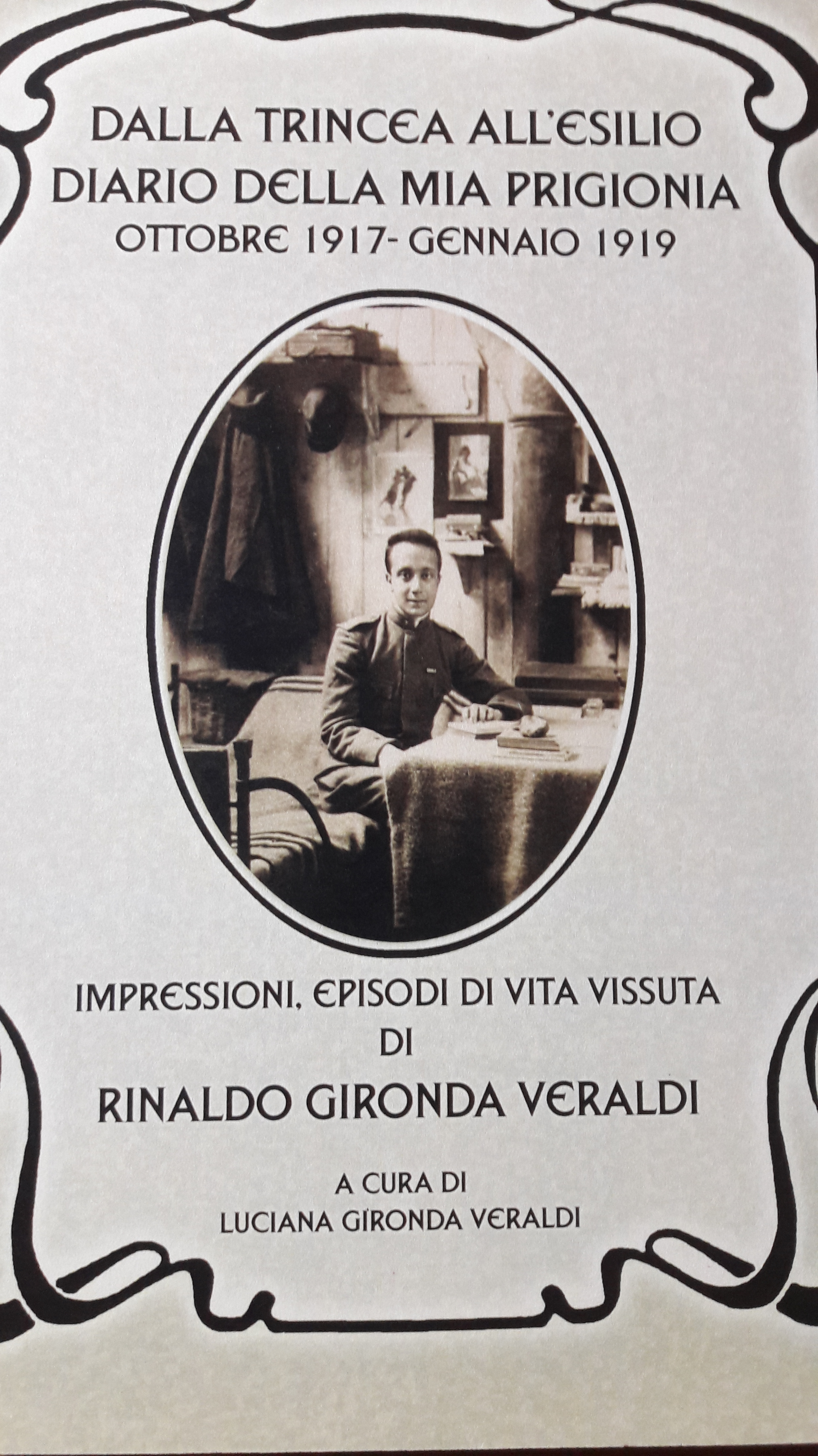 Il centenario della Grande Guerra è stato un momento significativo per l’Italia, da cui le nuove generazioni possono trarre linfa, non per rivendicazioni o commemorazioni retoriche, ma per gettare le basi sociali di partenza e di costruzione di un nuovo tessuto di consapevolezze ed emozioni. Rinaldo Gironda Veraldi, nato ai piedi della Sila nel 1897 nell’incantevole borgo calabrese di Taverna (Cz), che in passato diede i natali al celebre pittore Mattia Preti, ha ricevuto la medaglia di bronzo al valore militare e la croce per meriti di guerra. Rientrato dalla guerra si dedica alla professione forense, affiancato da uno dei suoi sei figli, Aldo. I suoi diari di prigionia sono stati custoditi per anni da sua figlia Luciana, convinta che appartenessero ad una memoria intima e personale.