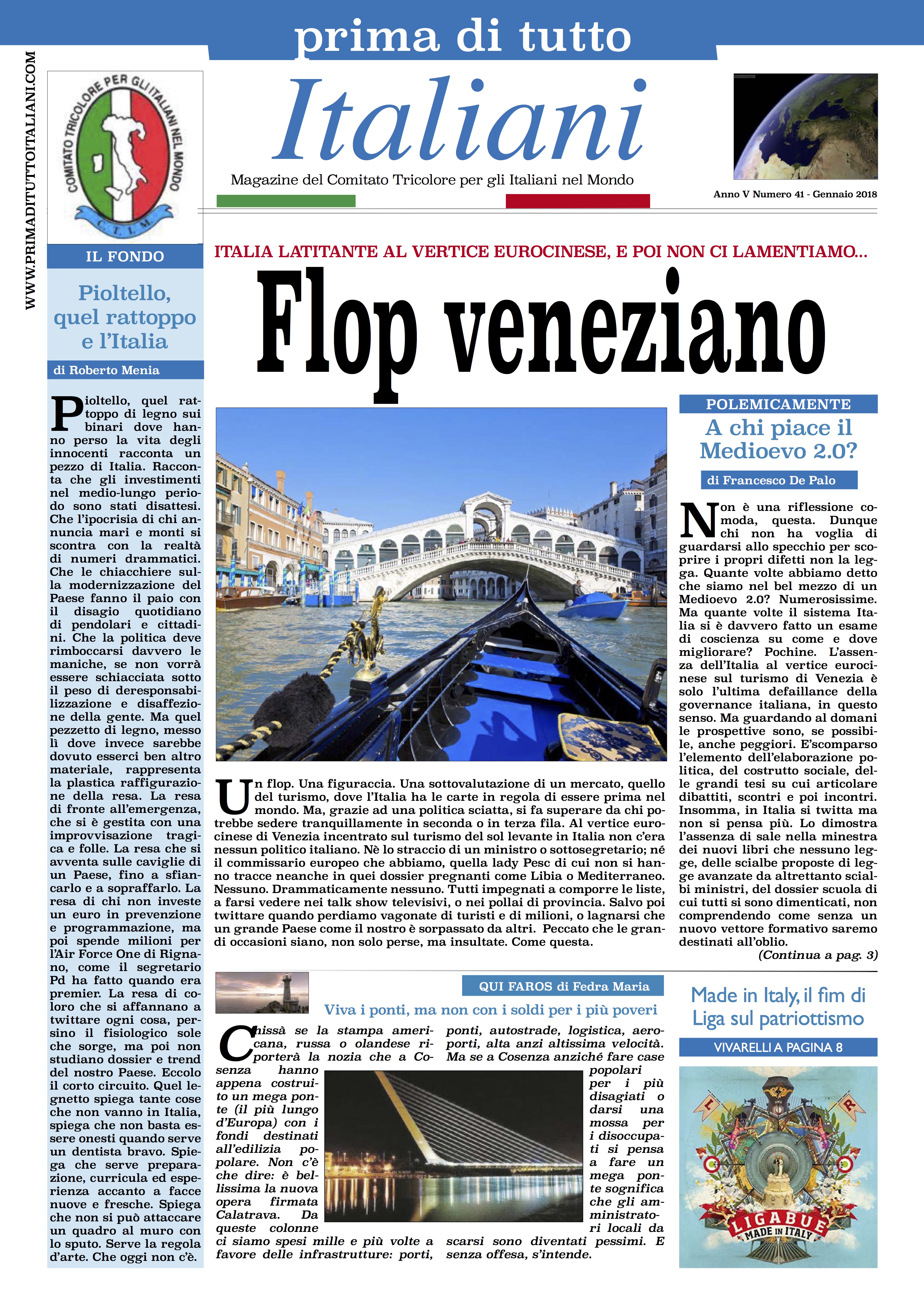 “Flop veneziano” è il titolo scelto per il numero di gennaio del mensile Prima di Tutto Italiani (cliccare qui per scaricarlo)
