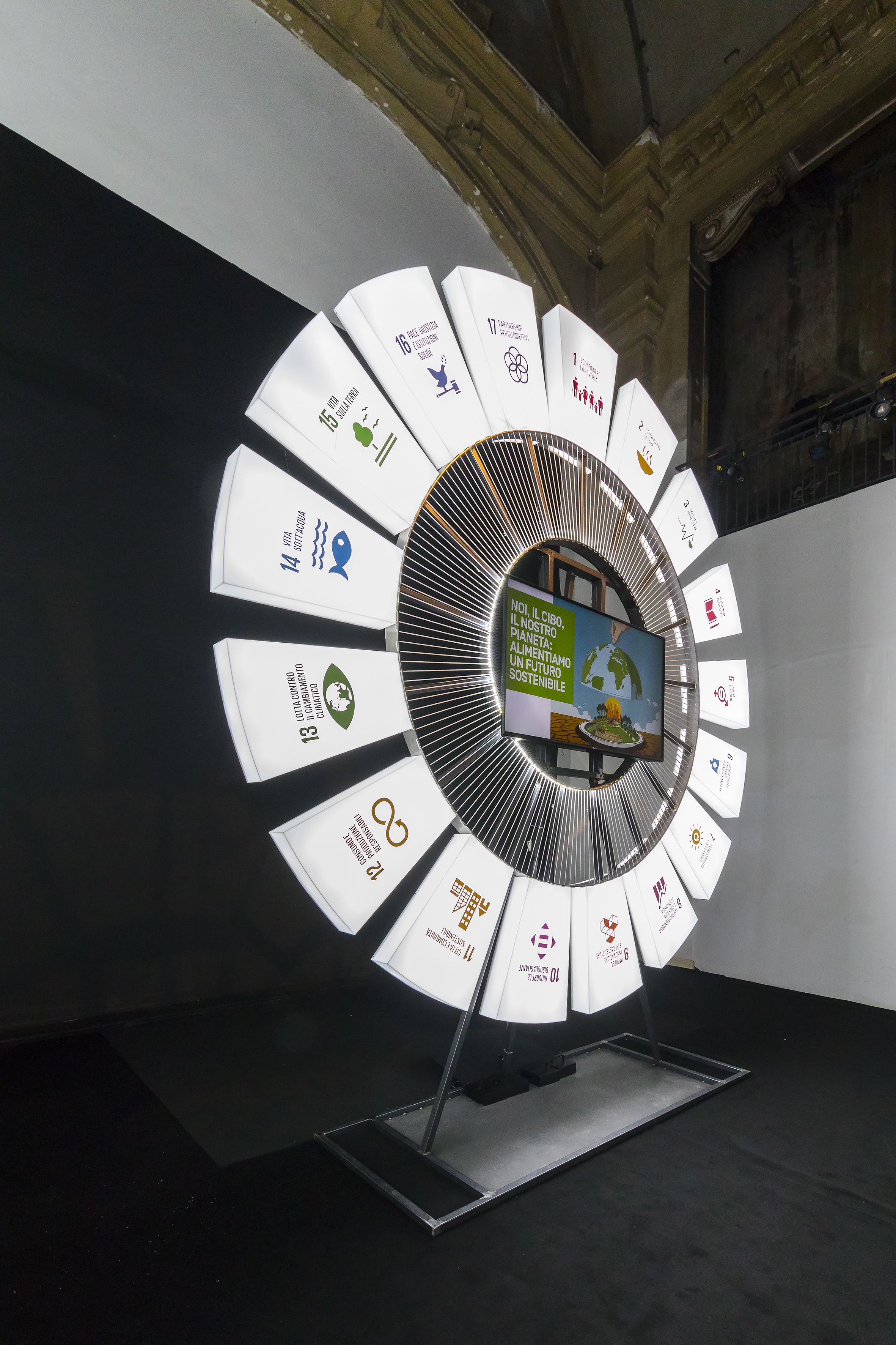 La mostra interattiva mira anche a esplorare le diverse correlazioni che il cibo ha con il mondo che ci circonda: si passa da “Cibo e Cultura” a “Cibo e Città”, per poi parlare del profondo legame tra “Cibo e Obiettivi di Sviluppo Sostenibile” fino alla sezione dedicata al “Piatto Virtuale”, che permette di scoprire se la nostra dieta è effettivamente sostenibile, per noi e per l’ambiente.