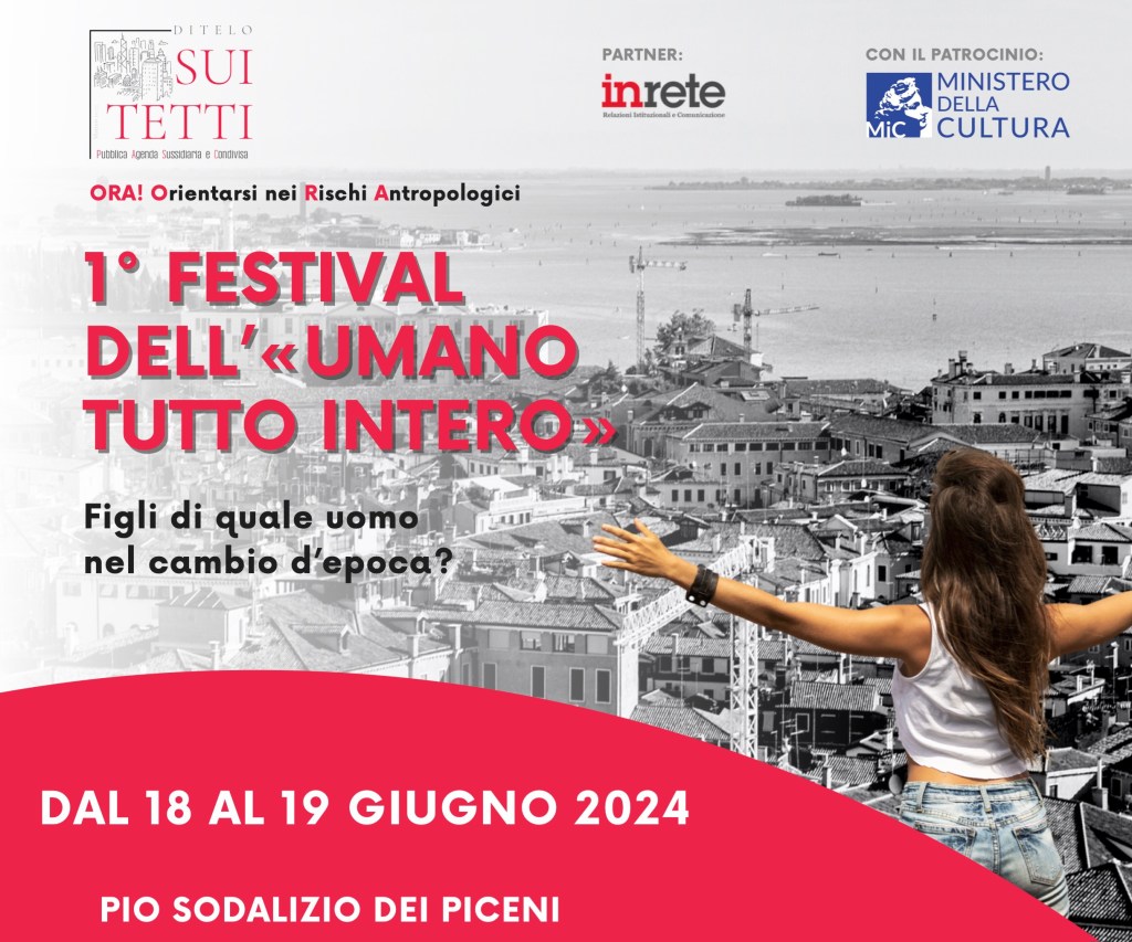 Questo l’obiettivo del 1° FESTIVAL DELL’«UMANO TUTTO INTERO» che si terrà a Roma il 18 e 18 giugno presso il PIO SODALIZIO DEI PICENI (Piazza di S. Salvatore in Lauro, 15) organizzato da “Ditelo sui tetti” (Mt 10,27) un network per ora frequentato da circa un centinaio di associazioni, che ha lo scopo di dare voce a un giudizio comune sulle dinamiche normative e “pubbliche”, che incidono sulla concezione dell’umano.